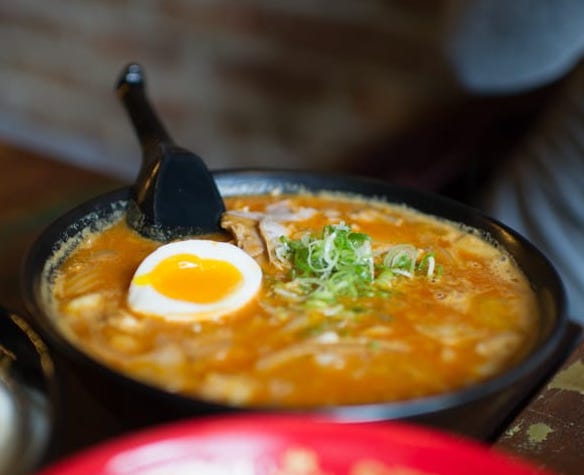 Chashu, Scallion, Onion, Cabbage, Bean sprouts, Soft boiled egg